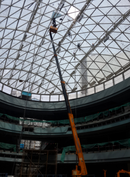 为确保武进万达广场大型LED悬挂屏的使用清静,克日,我公司检测中心受委托对该广场中庭椭圆采光顶钢龙骨举行了静载试验。该椭圆采光顶长33.6m,宽25.2m,离地25m,属于大型网架结构,这是我公司检测中心首次单独对此类大型钢龙骨网架举行现场...